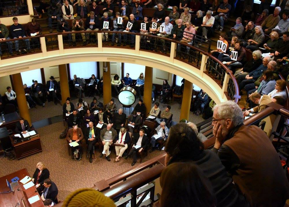 Portland is the first and only city to divest from prisons and all corporate securities–due to the organizing of a powerful coalition of prison divest, BDS, DefundDAPL and fossil fuel divest activists.